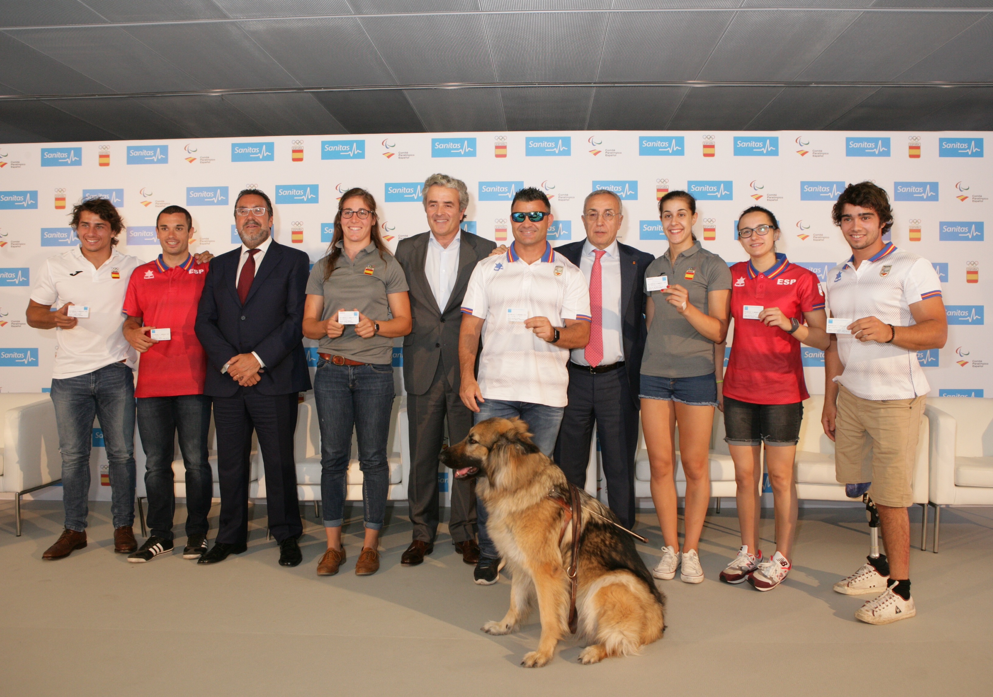 Miguel Carballeda, Jairo Ruiz, Iñaki Ereño y Alejandro Blanco durante el acto de entrega de tarjetas de Sanitas a deportistas olímpicos y paralímpicos antes de los Juegos de Río 2016.