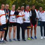José María Pámpano, junto a otros compañeros de selección tras lograr el bronce en los 800 metros T36 del Mundial de Dubái.