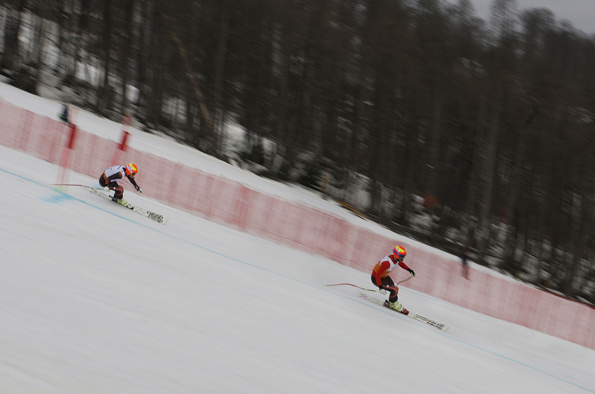 Gabriel Gorce y Arnau Ferrer en la manga de supergigante de la prueba supercombinada, durante los Juegos Paralímpicos de Sochi 2014.