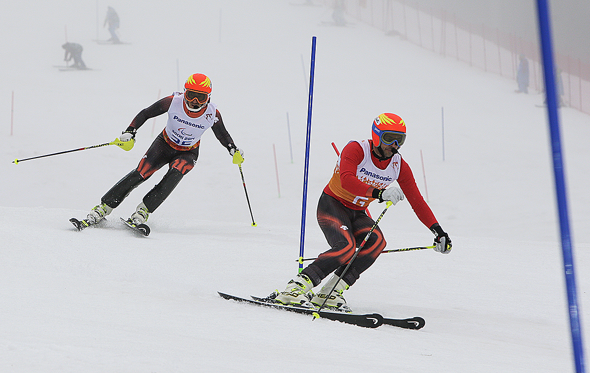 Gabriel Gorce y Arnau Ferrer en el eslalon de la supercombinada de los Juegos Paralímpicos de Sochi 2014.