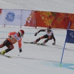 Gabriel Gorce y Arnau Ferrer en la primera manga del eslalon de los Juegos Paralímpicos de Sochi 2014.