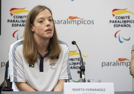 28-05-2024 Marta Fernández interviene durante la presentación en Valladolid de los deportistas castellanoleoneses preseleccionados para los Juegos Paralímpicos de París 2024. Deporte Institucional Especial París 2024