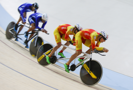 08-09-2016 Carlos González y Noel Martín (deportista de apoyo) compiten con el tándem italiano de persecución en pista de la clase MB durante la primera jornada de ciclismo de los Juegos Paralímpicos de Rio 2016 Deporte Ciclismo Especial Río 2016 Jornada Jornada 1