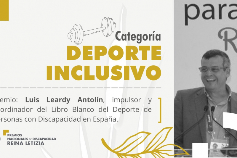 El Ministerio de Derechos Sociales y Agenda 2030, a través del Real Patronato sobre Discapacidad, ha fallado los Premios Nacionales de Discapacidad Reina Letizia y, en la categoría de Deporte Inclusivo, se le ha concedido a Luis Leardy, director de Comunicación del Comité Paralímpico Español y campeón paralímpico en natación en los Juegos de Seúl 1988.