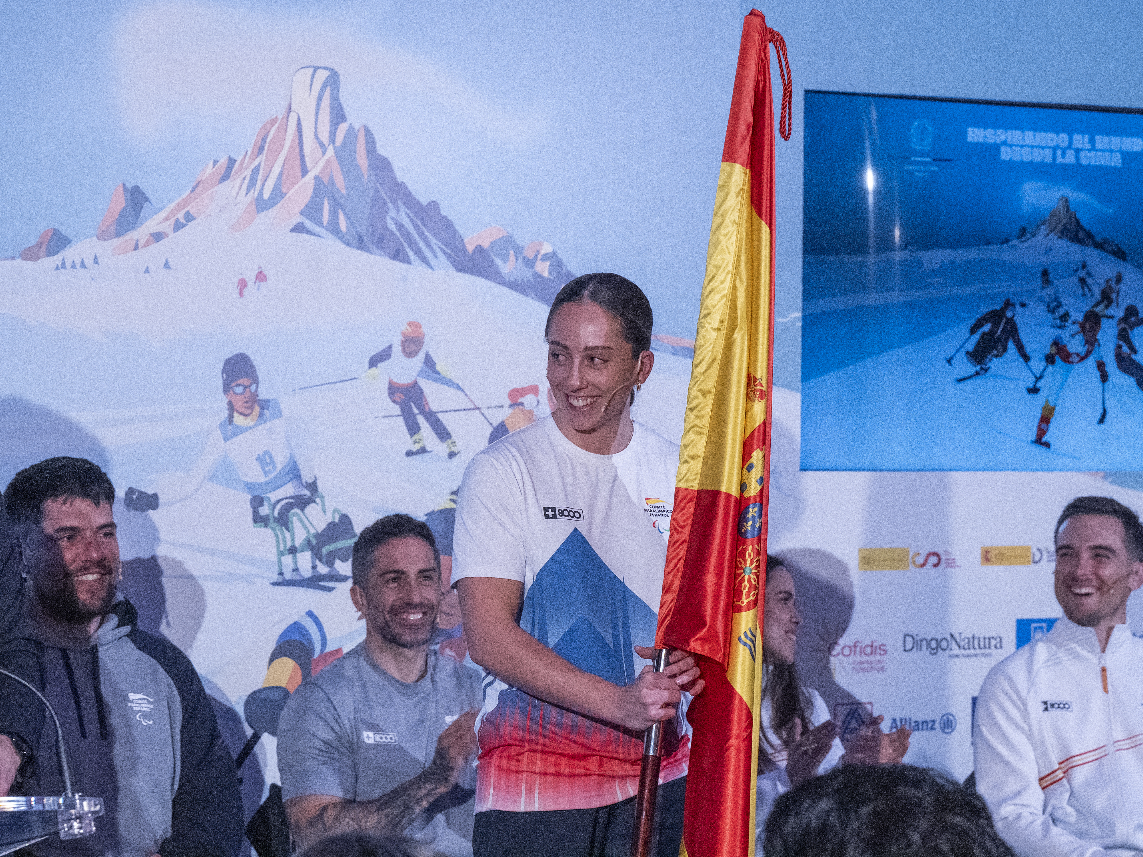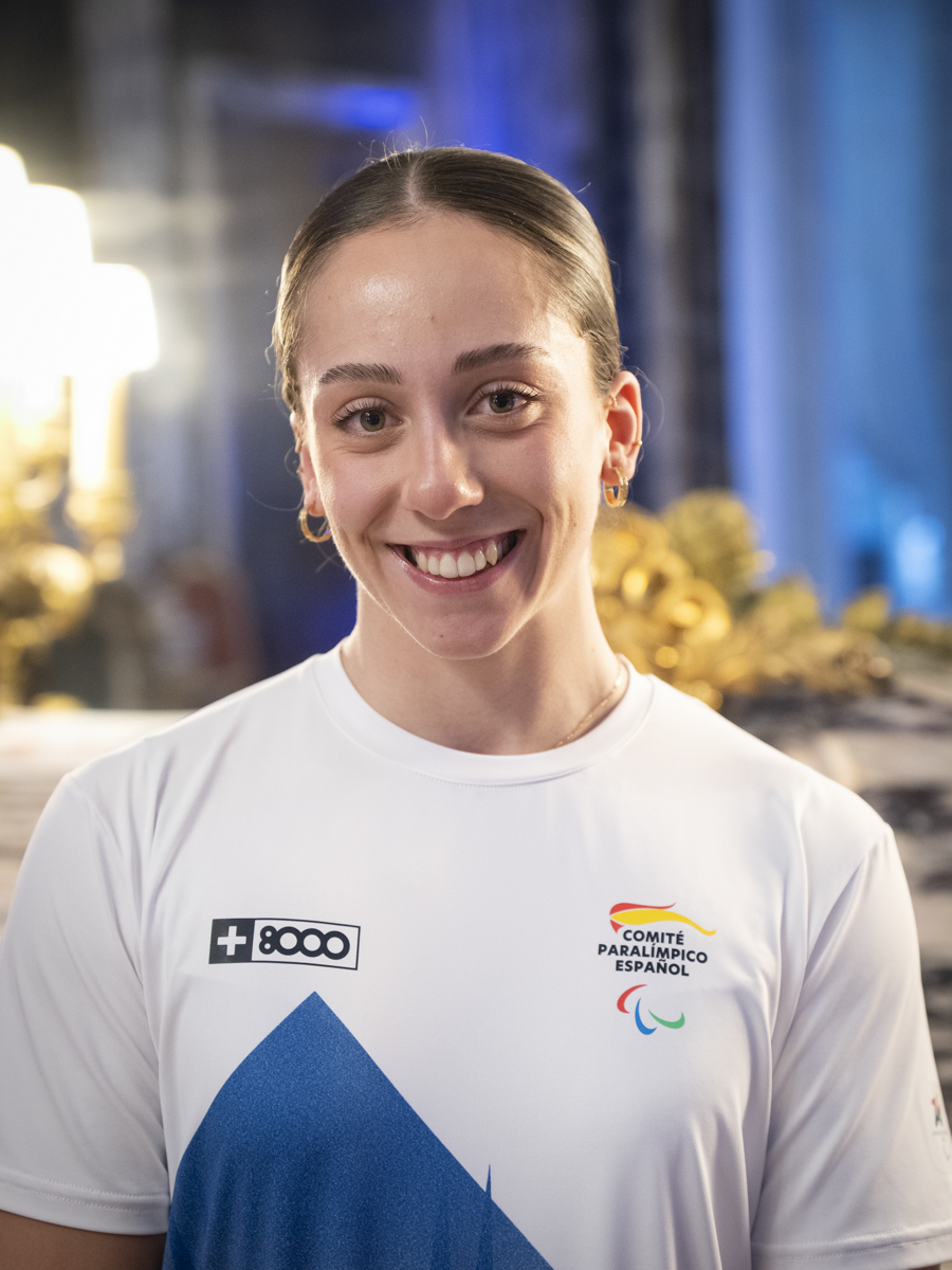 María Martín-Granizo viste la equipación oficial +8000 durante el acto de presentación del Equipo Paralímpico Español Milán Cortina 2026 celebrado en la embajada de Italia.