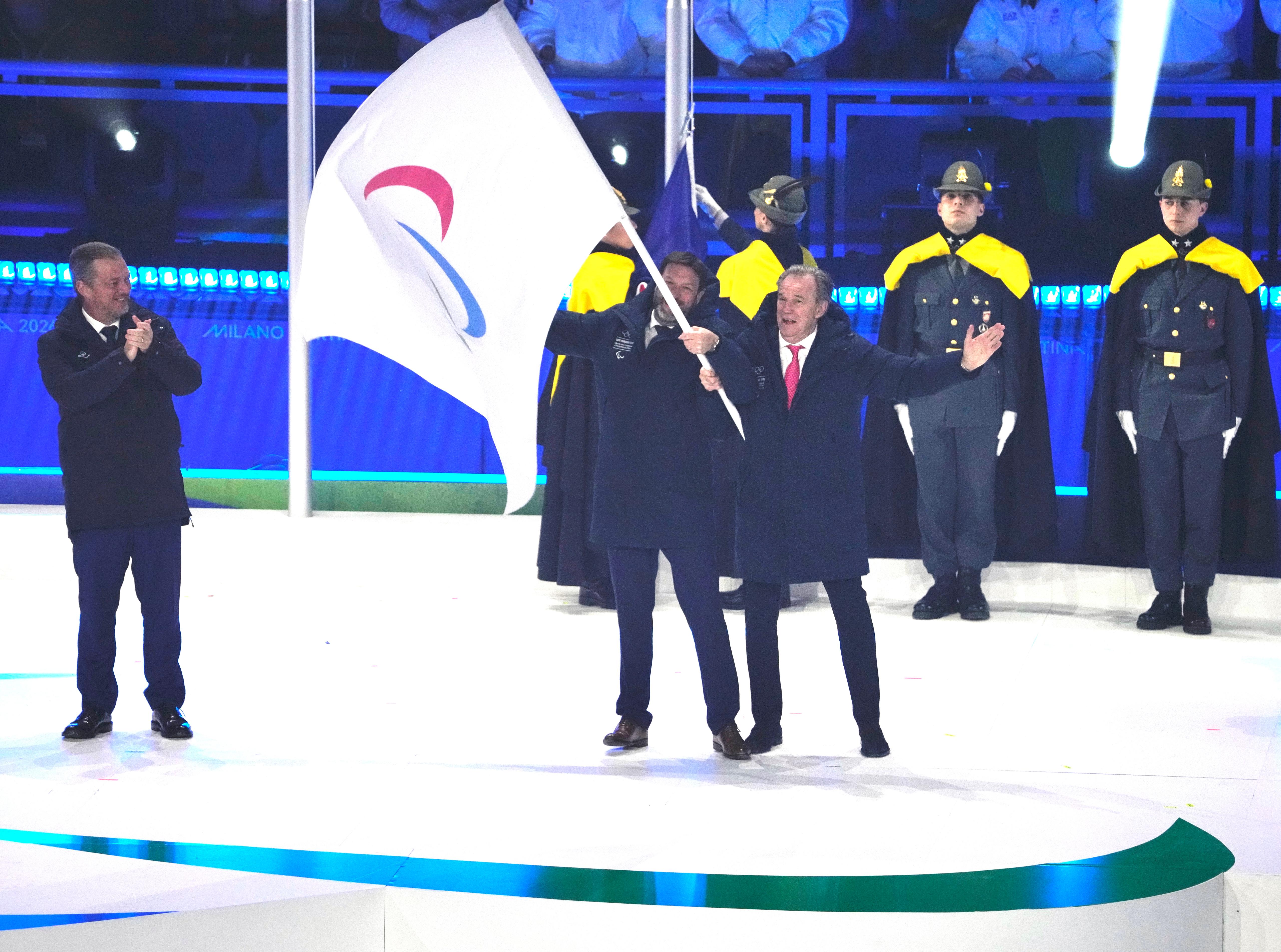 Javier Marcos viste la equipación oficial +8000 durante el acto de presentación del Equipo Paralímpico Español Milán Cortina 2026 celebrado en la embajada de Italia.