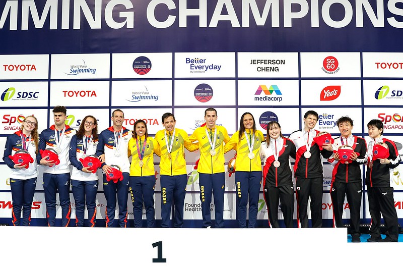 La cuarta jornada del Campeonato del Mundo de Natación Paralímpica disputado en Singapur terminó con cuatro medallas para la selección española: una plata para Teresa Perales, Toni Ponce y el relevo 4x100 estilos de discapacidad visual y un bronce para Marta Fernández.