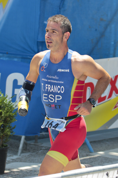 - PT2, PT3 y PT4: triatletas con discapacidad física o parálisis cerebral clasificados en función de su capacidad funcional, desde los más afectados (PT2) a los más levesc (PT4). Pueden correr, aunque sea con ayuda de prótesis o bastones, y utilizar una bicileta convencional, con adaptaciones o un triciclo.