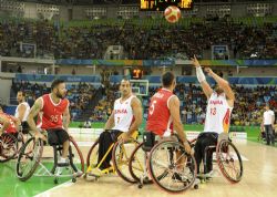 Asier García (13) lanza a canasta en el partido que España perdió con Turquía (65-68) en la tercera jornada de la competición paralímpica de BSR