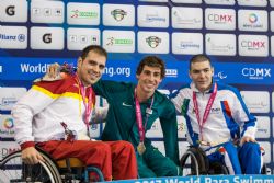 Antoni Ponce consigue la medalla de plata en 100 metros espalda S6 durante la cuarta jornada del Campeonato del Mundo de Natación Paralímpica México 2017.