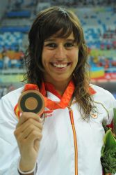 Esther Morales con la medalla de bronce en los 100 metros espalda.