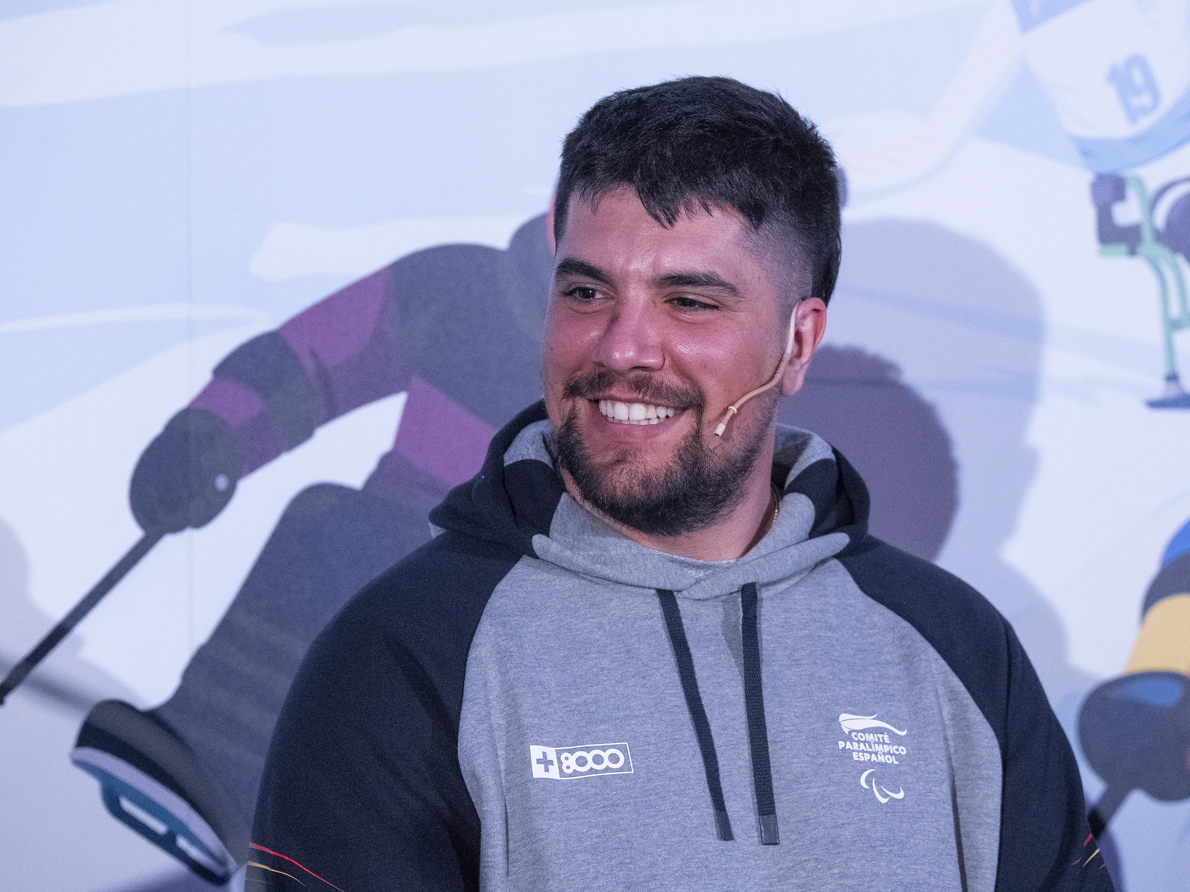 Javier Marcos viste la equipación oficial +8000 durante el acto de presentación del Equipo Paralímpico Español Milán Cortina 2026 celebrado en la embajada de Italia.