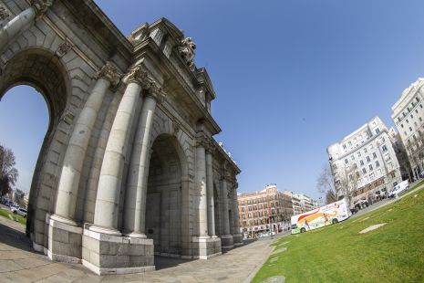 05-02-2021 Autobús conmemorativo del 25 Aniversario del CPE, a su paso por la Puerta de Alcalá, en Madrid. Deporte Institucional